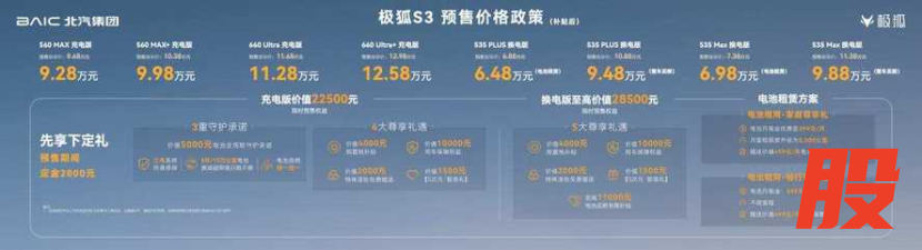 发布会上,极狐汽车为广大用户量身定制了总价值22500元的限时预售权益,包括享受购置税补贴4000元,免费送价值5000元电池全周期守护承诺、价值2000元的特殊漆色以及价值1500元的S次元·智选礼以及价值10000元的用车保障权益。现在即刻下订,就能第一时间锁定全部超值福利,不用等待,直接告别充电排队、续航焦虑,开启省钱又省心的高品质家用纯电出行。