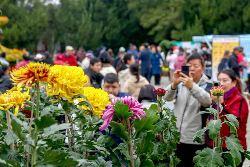 据北京市园林绿化资源保护中心种苗科一级主任科员、高级工程师宋艳霞介绍,除主会场北海公园外,全市多个展区同步开启赏菊模式。国家植物园(北园)举办第四届菊花展,打造“福禄生花”主题菊花海,选用14个品种1.8万盆小菊,融合葫芦文化意象,展现秋日吉祥景致。顺义鲜花港以“景观创新+沉浸体验”为特色,营造10.6万平方米菊花主题游览空间,推出“风漾花谱”“莫奈廊桥”等网红打卡地,并结合露营、咖啡、文创体验打造全龄友好的赏花生活场景。