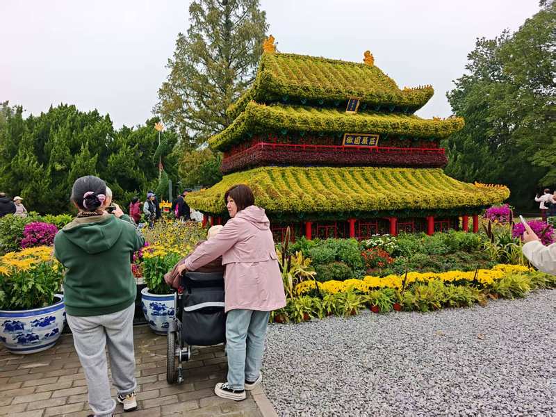 室外景点将菊花与琼华岛、太液池等标志性景观自然融合,营造“人在画中游”的诗意氛围;标准菊展台按花色、花型陈列精品菊花,尽显栽培特色;特色品类专区集中展示大立菊、悬崖菊、塔菊、造型艺菊等特色菊种,同步开展“菊韵百年”主题插花表演,搭配古筝演奏《菊花台》,让传统花艺与古典音律交相辉映。记者看到,公园采用立体花坛再现了消逝百余年的大佛殿,不少游客在此拍照打卡。